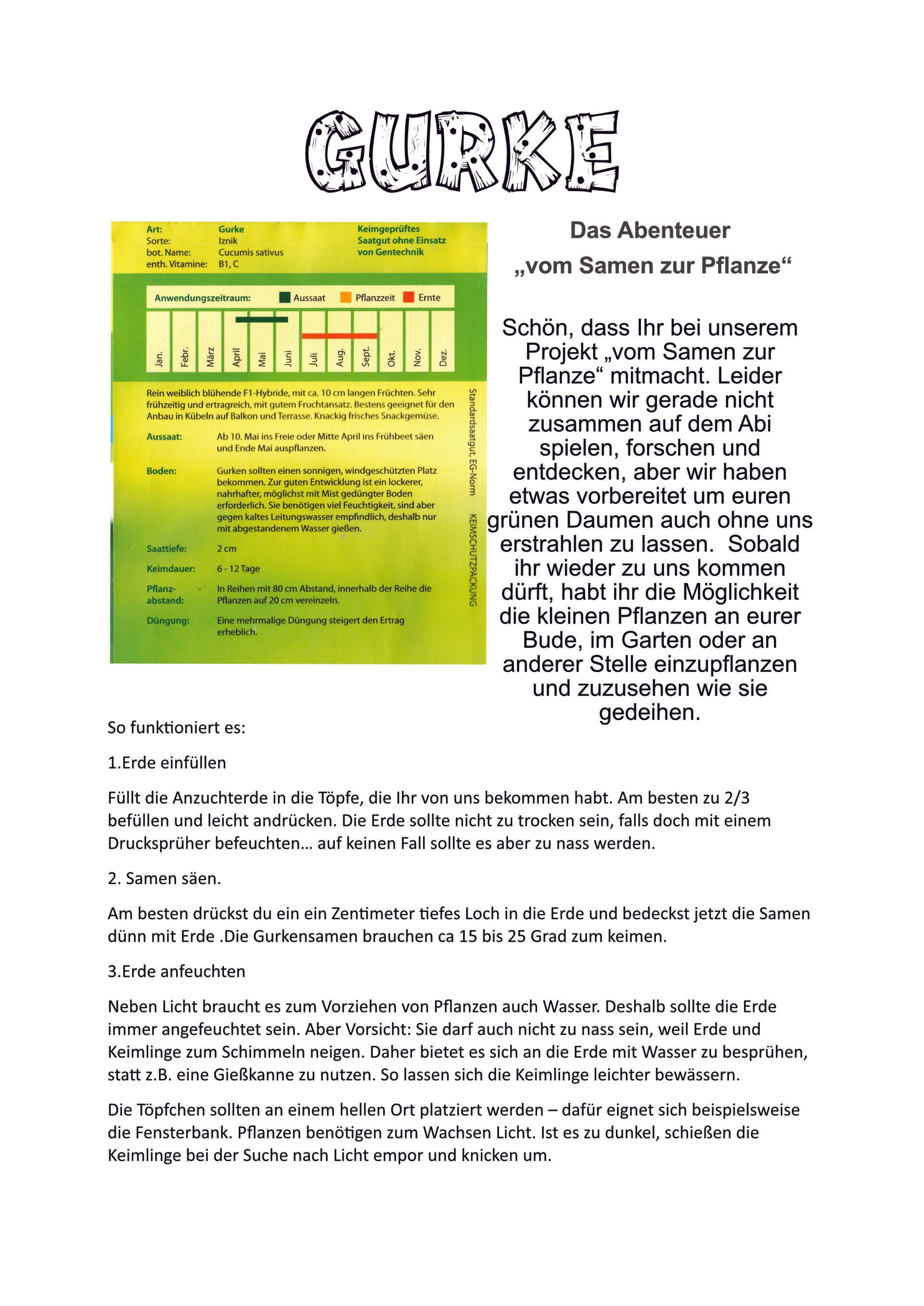 Schön, dass Ihr bei unserem Projekt „vom Samen zur Pflanze“ mitmacht.