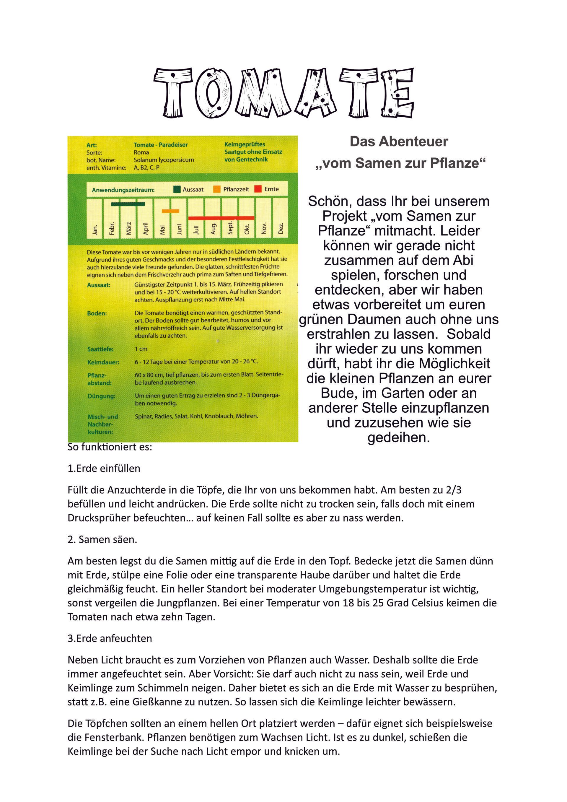 Schön, dass Ihr bei unserem Projekt „vom Samen zur Pflanze“ mitmacht.
